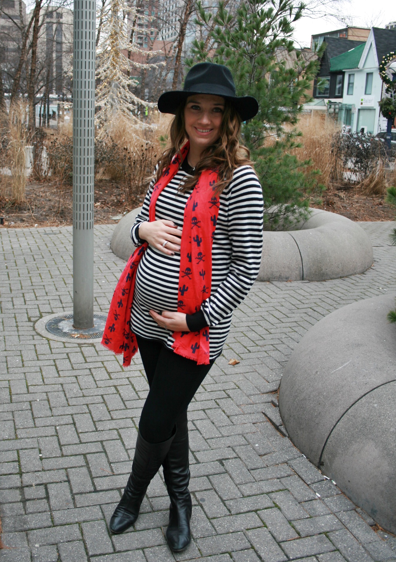Many fashionistas and bloggers wear or photograph stand out pieces once and then you never see them again. This could be possible if you had a limitless budget, but for the rest of us this is not an option. Finding basic pieces that suit your style can and should be worn multiple times. All you have to do is change your accessories, shoes and handbag and voila you have a new transformed look. Here is a link of how I styled this dress in the fall during the earlier stages of my pregnancy.